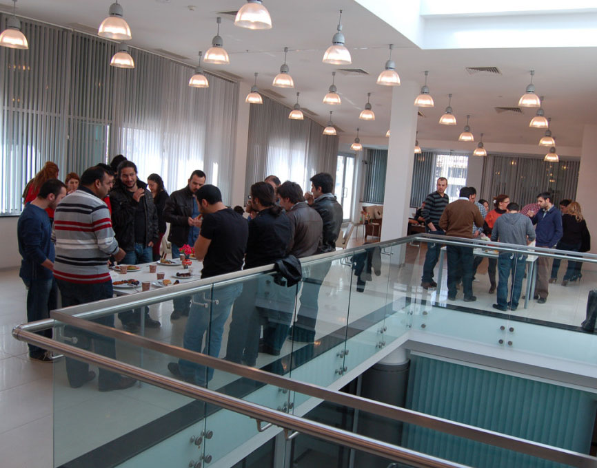 AKGÜN Grup, 9 Şubat 2013 tarihinde AKGÜN Plazanın eşsiz Ankara manzaralı teras katında tüm çalışanlarıyla birlikte hafta sonunu değerlendirmek adına etkinlik düzenlemiştir. Etkinliğe Yönetim Kurulu Başkanımız başta olmak üzere Trabzon’dan gelen İdari ve Mali İşler Koordinatörümüz ve ailesi ve tüm AKGÜN Plaza çalışanlarımız katılım sağlamıştır. Etkinlik boyunca Yönetim Kurulu Başkanımız masaları ziyaret ederek her bir çalışanımız ile hoş sohbet gerçekleştirmiş, içten ve doğal görüntüler sergilemişlerdir. Etkinlik kapsamında Ankara’nın en lezzetli pasta, börek ve yemeklerini sunan yemek firmasından getirtilen ikramlar tüm çalışanlarımıza sunulmuştur. Teras katında çalışanlarımızın hizmetine sunulan bilardo masasında bilardo oynayarak vakit geçiren çalışanlarımız objektiflere yansımıştır. Enfes tatlar eşliğinde, teras manzarasında gerçekleştirilen bu etkinlik hafızalarda unutulmayacak kareler bırakmıştır.